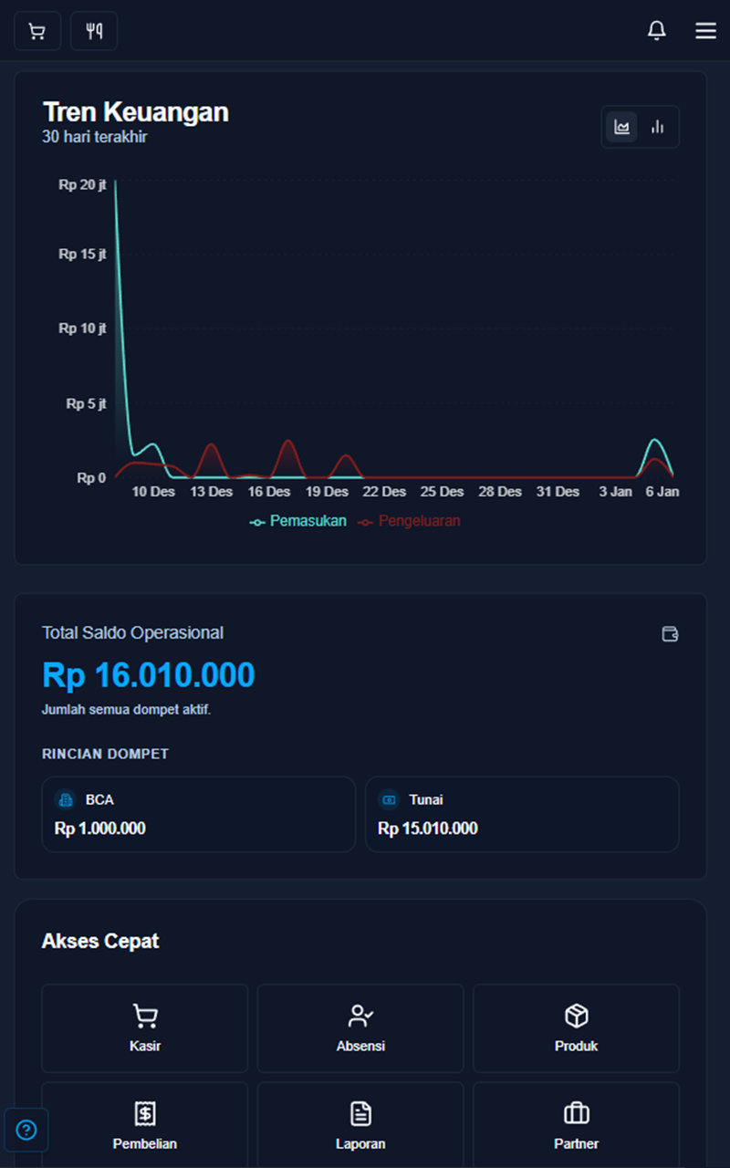 Fitur multi-wallet untuk memisahkan Kas Toko, Operasional, dan Prive Pemilik.
