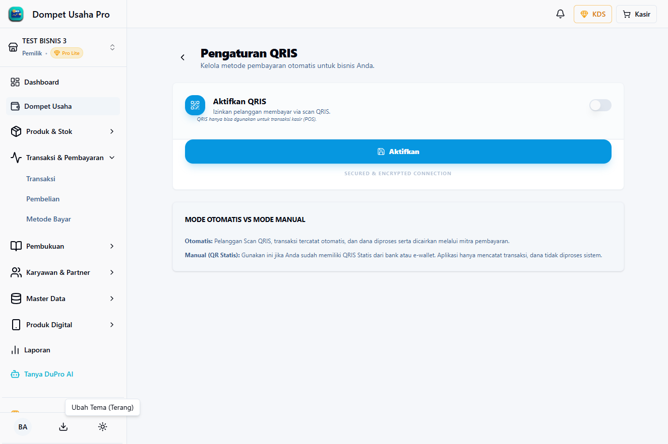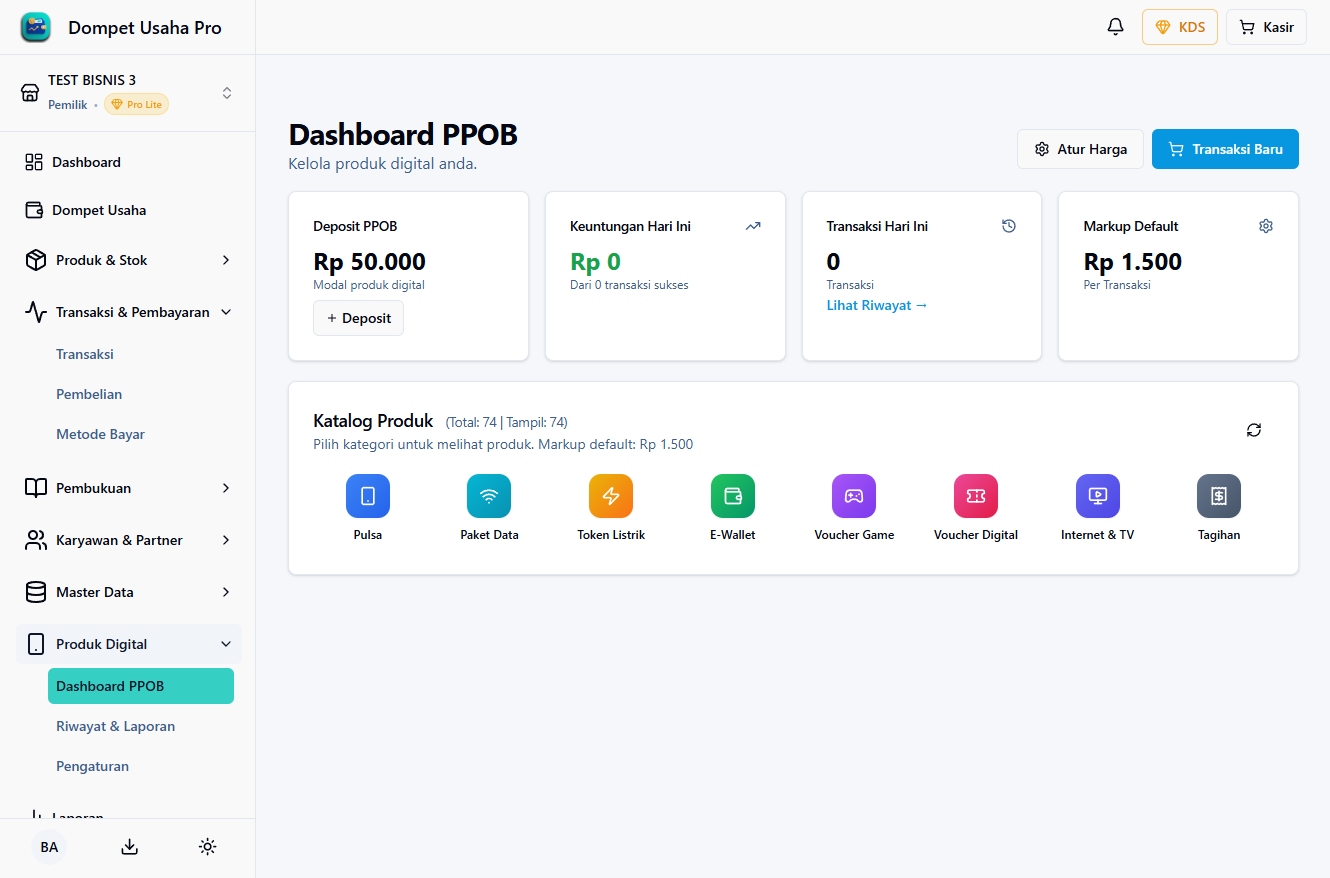 DompetUsahaPro merupakan platform perangkat lunak manajemen usaha dan bukan lembaga keuangan, bank, maupun penyelenggara dompet elektronik (e-wallet).